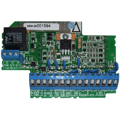 The GEM-2D is a module that connects to the GEMACM1D, an accessory that adds integrated access control to the burglary alarm functions of the GEM-X255 control panel. The GEM-2D allows the GEM-ACM1D to independently control a second access relay using a separate card reader.