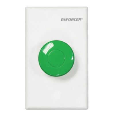 1½" Green mushroom-cap button with single-gang white plate. NO/NC contact, rated 50A@24VAC.