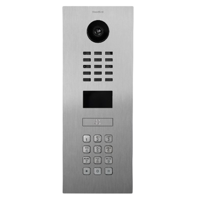 DoorBird IP Video door station D2101KV is for single-family homes and businesses. It has 1 unit and 1 call button. It is made of stainless steel V2A, brushed, and has a stainless steel plate with a bell symbol and keypad module.