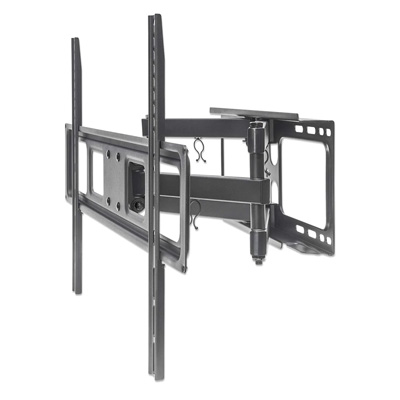 This strong full-motion TV Wall Mount Bracket from Manhattan safely holds your TV on two articulating arms and offers +5 to -15° tilt and +/-60° swivel adjustment for optimized views. It fits flat and curved LCD, OLED or plasma TVs up to 70" and weighing up to 40 kg (88 lbs.) with VESA compliance up to 600x400. You're all set for a confident above-the-floor installation with +/-3° post-leveling adjustment that helps get the mount perfectly horizontal on the wall. This mount is ideal for residential, office, hospitality, classroom, conference room, digital signage and other commercial applications. Wherever you install it, the universal Manhattan Full-Motion TV Wall Mount puts the best TV viewing experience front and center.