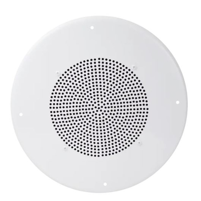 The off-white Speco Technologies G86TG is an 86 Series 8" ceiling speaker offering wide-dispersion 120° conical coverage for background music and paging applications in offices, stores, waiting rooms, and more, whether used with constant-voltage or low-impedance systems. Featuring an 8" coaxial driver, the G86TG is capable of 10W RMS power handling and a frequency range of 85 Hz to 20 kHz. The integrated 5W transformer allows operation at 25/70V, or 8 ohms (transformer bypassed). The G86TG features a classic in-ceiling grille design and color-coded leads for simplified wiring. The Speco Technologies STH8 back can and TS8 ceiling support are available separately for optimal installation.