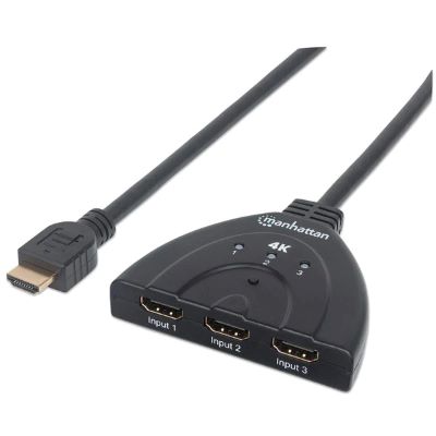 The Manhattan 4K 3-Port HDMI Switch allows media enthusiasts to connect three HDMI video sources — including gaming consoles, Blu-ray players, satellite receivers, digital recorders, set-top boxes and other devices — to a single Ultra-High-Definition (UHD) display.