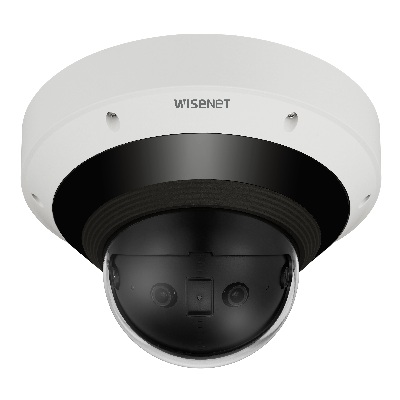 Network vandal outdoor Multi-sensor dome camera, panoramic view with stitched image, (5MP X 4 sensors) 15MP @ 20fps, triple codec H.265/H.264/MJPEG with WiseStream II technology, WDR 120dB, IR viewable length 20m (65.5'), built in video analytics and sound classification, Heatmap, Bi-directional audio support, Micro SD 2 slots, IP66/IK10/NEMA4X, TPM 2.0 (FIPS 140-2 level 2), PoE+/12VDC.