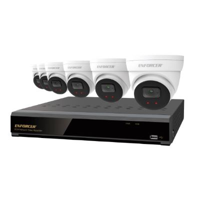 ENFORCER Surveillance Kits offer all the elements of an easy plug-and-play installation. The included IP cameras provide excellent picture quality with True Wide Dynamic Range (WDR) and Digital Noise Reduction (3DNR). The NVR features built-in AI functions for multiple security purposes. The kits are suitable for various applications due to their cost-effectiveness and simple-to-install design.