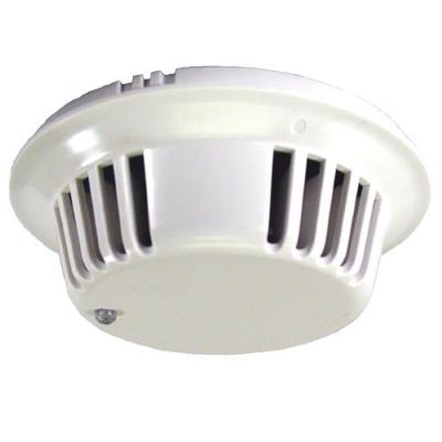 This smoke detector scatters light using a pulsed infrared source operating with a gated, high-speed, photodiode infrared sensor. The symmetry of the optical chamber allows 360° uniform smoke entry, but minimizes external light entry. The detector uses low current electronic circuitry, so it can connect to 12 VDC nominal or 24 VDC nominal power source circuits.
