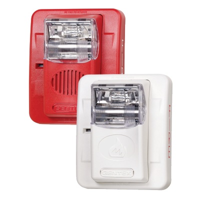 Horn/Strobe, selectable candela strobe, wall mount, red faceplate, 12 VDC.