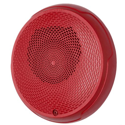 System Sensor L-Series speaker, red, ceiling-mountable, high fidelity.