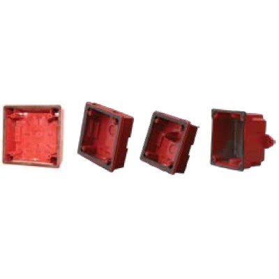 Weatherproof back box, red, includes weep hole and plug.