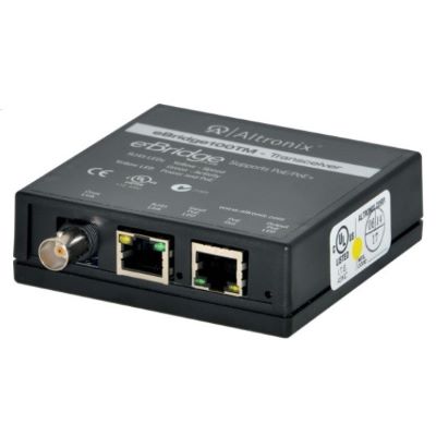 Altronix eBridge100TM EoC hardened transceiver transmits data at 100Mbps, Full Duplex over Coax cable to a paired eBridge receiver and provides power in a PoE/PoE+ compliant format to an enabled device/camera. The eBridge receiver is available in various options and is powered by an external midspan or endspan. The receiver passes PoE/PoE+ power over the same coax cable to the eBridge100TM transceiver, which, in turn, passes this power to an enabled IP camera/device. These plug and play units facilitate a cost-effective, simple way to replace legacy analog products with new IP devices over existing coax up to 300m. When paired with the eBridge100RM EoC Receiver, the eBridge100TM will pass 100Mbps full duplex data and PoE/PoE+ over CAT5e (or higher) up to 500m.