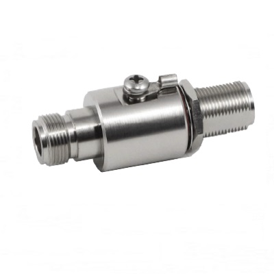 The TQ-LP coaxial lightning arrestors act as a signal filter and are designed to pass desired frequencies while suppressing lightning surges. Lightning strike electrical surges are diverted through the protector’s short-circuit to the ground. TQ-LP features N-Female connectors on both ends.