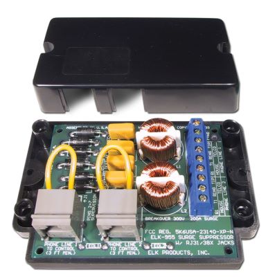 The 955 from ELK is a Two-Line RJ31X/38X Telephone Jack containing solid-state transient suppression designed to protect the telephone inputs on an alarm control.