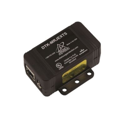 DTK-MRJEXTS is designed with state-of-the-art circuitry to provide superior protection for Power over Ethernet Extender Circuits. This point of use surge protector is compatible with CAT5e, CAT6 and CAT6A cabling infrastructure, and is designed to be installed on the outputs of long range PoE extender devices. When used with STP cabling, the DTKMRJEXTS does not require a separate earth ground.