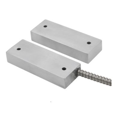 The 1000-65V BMS High Security Magnetic Contact is a 3 1/2″ long heavy duty surface mount contact that works on steel doors where an industrial contact is preferred. This magnetic contact has two CC door switches and one OC magnetic tamper switch when magnet is present. There are six color coded wires and a surface mount rare earth magnet. Armored cable, 18″ long, and epoxy sealed electronics make it impervious to harsh environments. Provide your customers more than just a door switch, give them time tested inexpensive Flair high security contacts with built in magnetic tamper.