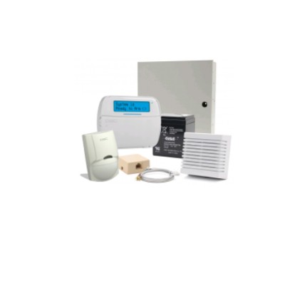 NEO Control Panel Kit. Contains one HS2032NK control panel in a PC5003C cabinet, one HS2LCDRF9 Full Message LCD Hardwired Keypad with Built-in PowerG Transceiver, one LC-100-PI pet immune PIR motion detector, a BD4-12 12V, 4Ah battery, a PTD1640U standard efficiency transformer, and a SD15WULF indoor siren.
