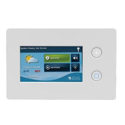 The TS2 is a wall-mounted, full color, touchscreen user interface that provides many of the same easy-to-use keypad functions available on the GC2e control panel. Users can see and hear the system status and chimes/alerts. The TS2 makes it easy to arm and disarm the system, view sensor zones, as well as control door locks, lighting and thermostats all with the same familiar interface found on the GC2e control panel.